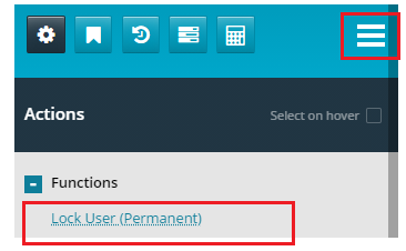 4. Navigate to the Hamburger / Actions menu an under Functions click the Lock User menu item